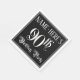 This ornate and elegant birthday-themed paper napkin design features an editable name and the message “90th Birthday Party”. The large number “90th” and the words “Birthday Party” are in luxurious script-style text. The background is coloured black by default (although it can be customized). Fancy, elegant paper napkins like this might be useful at a birthday celebration being held to honour somebody’s ninetieth birthday. [~Z0000563]