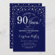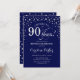 90th Birthday Party Invitation - Silver Navy Blue