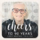 This custom 90th birthday paper coaster features the guest of honour's personalized photo, name, and birthday, along with the word "Cheers" in elegant white calligraphy script. A dark screen helps make the text pop. A great way to celebrate someone who's turning ninety!