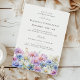 Elegant watercolor asters create a floral border at the bottom of this birthday invitation. The soft pastel purple, pink blue and white flowers are the September birthday month flower making this the perfect theme for your September birthday.