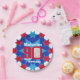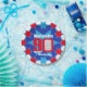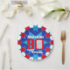 Celebrate a 90th Birthday with this fun blue red and white boys star patterned ninetieth birthday photo and name disposable paper plate. Great idea for adding some fun to a 90th birthday party. Reads Happy Birthday Malcolm 90, customize with your own birthday mens photo and choice of name. Ideal to add some fun and a personal touch to a special birthday boys ninety birthday party. Design by Sarah Trett.