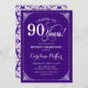90th Birthday - Purple White Damask Invitation
