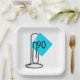 An aqua note on a giant black paper clip on white for a 90th birthday.