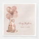 These beautiful 90th birthday party dinner napkins featuring a 2-layer rose gold cake with rose gold balloons, the number 90 in rose gold, the guest of honour's name in a fabulous script font and the date of the party in a modern cap font would be perfect for celebrating your wife, mom, sister, friend, aunt, grandmother, great grandmother. They are traditional and classic while being fresh, modern and contemporary. The background is a lovely coordinating soft rose gold foil.