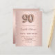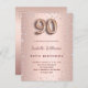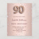 A modern, stylish and glamourous invitation for a 90th birthday party. A faux rose gold metallic looking background with pink diamonds. The name is written with a modern dark rose gold coloured hand lettered style script. Personalize and add your party details. Number 90 is written with a balloon style font, script.