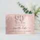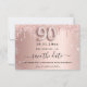 A girly and trendy Save the Date card for a 90th birthday party. Rose gold gradient background decorated with rose gold and faux silver drips. Personalize and add a date and name/text. The text: Save the Date is written with a large trendy hand lettered style script with swashes. Number 90 with a balloon style font.