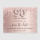 A girly and trendy Save the Date magntic card for a 90th birthday party. Rose gold gradient background decorated with rose gold and faux silver glitter drips. Personalize and add a date and name/text. The text: Save the Date is written with a large trendy hand lettered style script with swashes. Number 90 with a balloon style font.
