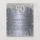 A modern, stylish and glamourous invitation for a 90th birthday party. A faux silver looking background, decorated with glitter dust. Personalize and add your name and party details. Number 90 is written with a balloon style font, script.