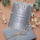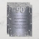 A modern, stylish and glamourous invitation for a 90th birthday party. A faux silver looking background, decorated with glitter dust. Personalize and add your name and party details. Number 90 is written with a balloon style font, script.