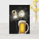 Party sparklers with gold confetti and a mug of beer for 90th birthday.
