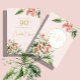 Gold Coloured and Pink is the background for this large tropical floral bouquet 90th birthday invitation.