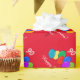 90th Birthday wrapping paper with custom message. Can also be used for 10 20 30 40 50 60 70 80th celebration. Customizable text, age number and background colour. Cheerful design with coloured balloons; red yellow blue green purple yellow orange aqua. Fun for ninety year old men and women. Unique ninetieth Bday party gift wrap for him or her.