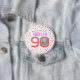 Bright colourful confetti random dots birthday 90th surprise party button. In bright living coral, hot pink, golden yellow and aqua blue green. Add your own birthday girl's photo in the centre of the 0 in 90 and customize with your own eightieth birthday girls name. Other matching items and milestone birthday years available. Original design by www.mylittleeden.com on zazzle.