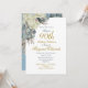 90th Floral Blue Gold Elegant Photo Birthday Invitation