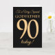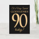 A chic 90th Birthday Card for a 'Very Special Godfather', with a number 90 composed of gold-effect numbers and the word 'Godfather', in gold-effect, on a black background. The inside message, which you can change if you wish, is 'Happy Birthday'