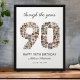 Looking for a special way to honour someone turning ninety? This customizable happy 90th birthday poster collects meaningful photos that make up the number ninety. The sentimental 'through the years' title adds a heartfelt touch, and you can personalize the text for that unique gift.