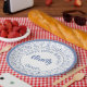 It is easy to personalize this unique design with your name, initial or monogram using the text templates provided. This over-the-hill theme has a blue and white random number pattern with milestone number 90 repeated in varied sizes and angles in the background. There is a white circle in the centre for your text, and blue and white rings around the rim.
