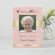 This 90th birthday invitation is very elegant. The design features her photo as the highlight with a golden frame on a rose gold background. Golden bands appear on both sides of the frame. In addition, a golden band appears along the bottom. On the reverse side you can put all of your invitation details on a golden background. Copyright henishouseofpaper