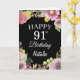 91e Anniversaire Watercolor Floral Flowers Carte noire avec nom et âge personnalisés. Pour plus de personnalisation, cliquez sur le bouton "Customiser" et utilisez notre outil de conception pour modifier ce modèle.