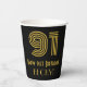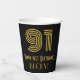 This 1920s-1930s style inspired and vintage style birthday-themed paper cup design features a large art deco inspired look number “91”, plus the birthday greeting message “Happy 91st Birthday,” and a custom name. The background is colored black. Paper cups like this might be used at a birthday party held in celebration of somebody’s 91st birthday. [~Z0000546]