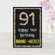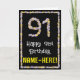 91st Birthday: Floral Flowers Number, Custom Name Card