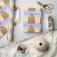 This colourful and upbeat birthday themed wrapping paper design features a cartoon-style depiction of a three-tier birthday cake having number-shaped candles on top showing the age “91“, along with the message “HAPPY 91ST BIRTHDAY,”, and an editable recipient name. The background has a multicolored pastel rainbow spectrum inspired gradient pattern. Cheerful birthday themed wrapping paper like this might be used when giving a gift or present in celebration of somebody’s 91st birthday. [~Z0000622]