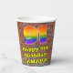 This fun and exciting urban street art and graffiti inspired birthday paper cup design features a large number “91” having a colourful rainbow spectrum gradient inspired pattern. It also features the message “Happy 91st Birthday,”, and an editable name. The background features a brick wall pattern. Colourful, vibrant paper cups like this might be fun to have at a birthday party/celebration being held to celebrate somebody’s 91st birthday. [~Z0000543]