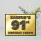 The front of this bold ninety-first birthday celebration foil invitation card features an editable name, a large number “91st”, the message “BIRTHDAY PARTY!”, and a border, all featuring a rustic, yet sophisticated, faux wood grain look inspired pattern. The back features personalized details about the event, such as the date, time, place, and any other useful information. Editable invitations like these might be used to invite guests/attendees to a birthday gathering being held to honour somebody’s 91st birthday. [~Z0000595]