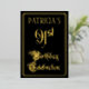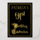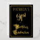 The front of this opulent and luxurious foil ninety-first birthday party/celebration invitation design features the message “91st Birthday Celebration” in ornate script-style text. It also features an editable name. The background of the front is coloured black by default (although it can be customized to a different colour). The back features personalized details about the event, such as the date, time, location, and any other information that may be relevant. Elegant, fancy, customized invitations like these might be used to invite guests to a birthday party/celebration being held in celebration of somebody’s ninety-first birthday. [~Z0000589]
