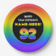 92nd Birthday: Colourful Rainbow # 92, Custom Name Paper Plate