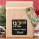 This sophisticated, luxurious, and elegant birthday-themed sticker design features a large ordinal number “92nd” having a faux/imitation gold-like appearance, plus the birthday greeting message “Happy 92nd Birthday,” and a customizable name in a script-style font. The background is colored black. Sophisticated birthday themed stickers like this might be used when wrapping a gift or present being given to somebody who is celebrating their ninety second birthday, or perhaps might be handed out to the attendees at a birthday celebration or party. [~Z0000517]