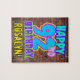 This fun birthday-themed puzzle design features the message “HAPPY 92ND BIRTHDAY,” having a vibrant, colourful, graffiti-inspired appearance, in addition to a customizable recipient name. The background features a pattern inspired by the look of a brick wall. A fun, customized birthday puzzle like this might be used to acknowledge somebody’s ninety-second birthday. [~Z0000532]