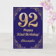 92nd Birthday Navy Blue and Gold Glitter Frame Card