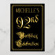 The front of this elegant, ornate, foil ninety-second birthday party/celebration invitation design features the message “92nd Birthday Celebration” in opulent script-style text. It also has a custom name. The background of the front is coloured black by default (although it can be customized to a different colour). The back features personalized details about the event, such as the date, time, location, and any other information that may be relevant. Fancy, luxurious, customizable invitations like these might be used to invite guests to a birthday celebration being held to celebrate somebody’s 92nd birthday. [~Z0000589]