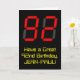 The front of this fun and nerdy birthday themed greeting card design features a large number "92" having a red seven segment digital display style appearance, along with the message "Have a Great 92nd Birthday," and a customizable name, on a black coloured background. The inside features an editable birthday greeting message, or could perhaps be cleared and left blank if a message is to be written by hand instead. A personalized birthday card like this might be a fun way to acknowledge somebody’s ninety second birthday. [~Z0000386]
