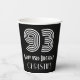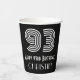 This 1920s-1930s style inspired and vintage style birthday themed paper cup design features a large art deco inspired appearance number “93”, along with the birthday greeting message “Happy 93rd Birthday,” and a personalized name. It also has a black-coloured background. Paper cups like this might be used when celebrating somebody’s ninety third birthday. [~Z0000542]