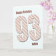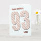 A very modern 93rd birthday card. This card is truly fabulous. Big letters in modern stripes on a blue background. Customize for your own unique message.