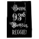 This ornate and luxurious birthday themed gift bag design features the message “Happy 93rd Birthday,” in elegant script style text, on a black coloured background. It also has an editable recipient name. A birthday themed gift bag like this might be a respectable way to wrap a gift or present being given to somebody who is celebrating their 93rd birthday. [~Z0000557]
