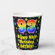 This joyful and colourful birthday-themed paper cup design features a large number “93” with a rainbow spectrum gradient inspired pattern, along with the message “Happy 93rd Birthday,”, and a customizable name. The background features a multicolored pattern featuring many star shapes with different colours and sizes. Vibrant, colourful paper cups like this might be fun to have at a birthday celebration being held to honour somebody’s 93rd birthday. [~Z0000540]