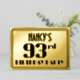 The front of this elegant ninety-third birthday party/celebration foil invitation card design features a customizable name, an art deco look inspired number “93rd”, the message “BIRTHDAY PARTY”, and a border pattern consisting of lines. The back features personalized details about the event, such as the venue/place, date, time, and any other information that may be relevant. Elegant, luxurious, customized invitations like these might be used to invite guests to a birthday party/gathering being held to honor somebody’s 93rd birthday. [~Z0000606]