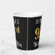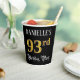 This ornate and opulent birthday paper cup design features a customizable name and the message “93rd Birthday Party”. The large number “93rd” has an imitation/faux gold-inspired coloring pattern, the words “Birthday Party” are in fancy script-style text, and the background is colored black by default (although it can be customized). Luxurious, elegant paper cups like this might be used at a birthday celebration/party being held in celebration of somebody’s ninety third birthday. [~Z0000567]