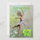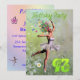 A beautiful ballerina flower fairy dancing on a birthday party invitation. The ballerina is wearing a white tutu, and has trails of flowers coming from her hair. She is dancing through a meadow full of daisies.
