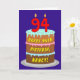 This fun and cheerful birthday themed greeting card design features a depiction of a three-tier birthday cake having number-shaped candles on top showing the age “94“, along with the message “HAPPY 94TH BIRTHDAY,”, and an editable recipient name. The inside has a custom birthday greeting message, or could perhaps be cleared and left blank if a message is to be written by hand instead. An upbeat, editable birthday greeting card like this might be a fun way to deliver a birthday greeting message to somebody who is celebrating their ninety-fourth birthday. [~Z0000620]