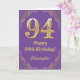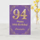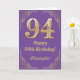94th Birthday Purple and Gold Glitter Frame Card