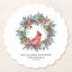 95th Birthday Party Red Cardinal Wreath Custom Paper Coaster