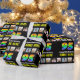 This bold and cheerful birthday themed wrapping paper design features a large number “95“ having a vibrant multicolored rainbow spectrum inspired gradient pattern, plus the message “Happy 95th Birthday,“ and an editable recipient name. There are also some photos that can be personalized, perhaps with photos of the recipient, the recipient’s family and friends, and/or the sender(s) of the gift. Birthday themed wrapping paper like this might be used when giving a gift or present in celebration of somebody’s ninety-fifth birthday. (Photography © Storytree Studios, Stanford, CA.) [~Z0000670]