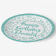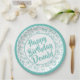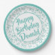 95th Party Random Number Pattern Teal/White Paper Plate