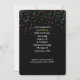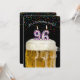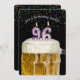 Number 96 candle in mug of beer with colourful confetti on black for 96th birthday party invite.