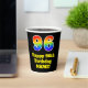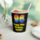 This fun and colourful birthday paper cup design features a large number “96” with a rainbow spectrum gradient inspired pattern, along with the message “Happy 96th Birthday,”, and a custom name. It also has a black-coloured background. Colourful, vibrant paper cups like this might be fun to have at a birthday party being held to honour somebody’s ninety sixth birthday. [~Z0000537]