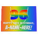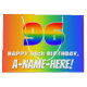 This joyful and fun birthday-themed gift bag design features a large number “96” with a colourful rainbow spectrum inspired gradient pattern, along with the message “HAPPY 96th BIRTHDAY,”, and a personalized recipient name. The background also features an exciting multicolored rainbow spectrum inspired gradient pattern. Personalized gift bags like this might be used when giving gifts or presents in honour of somebody’s 96th birthday. [~Z0000577]